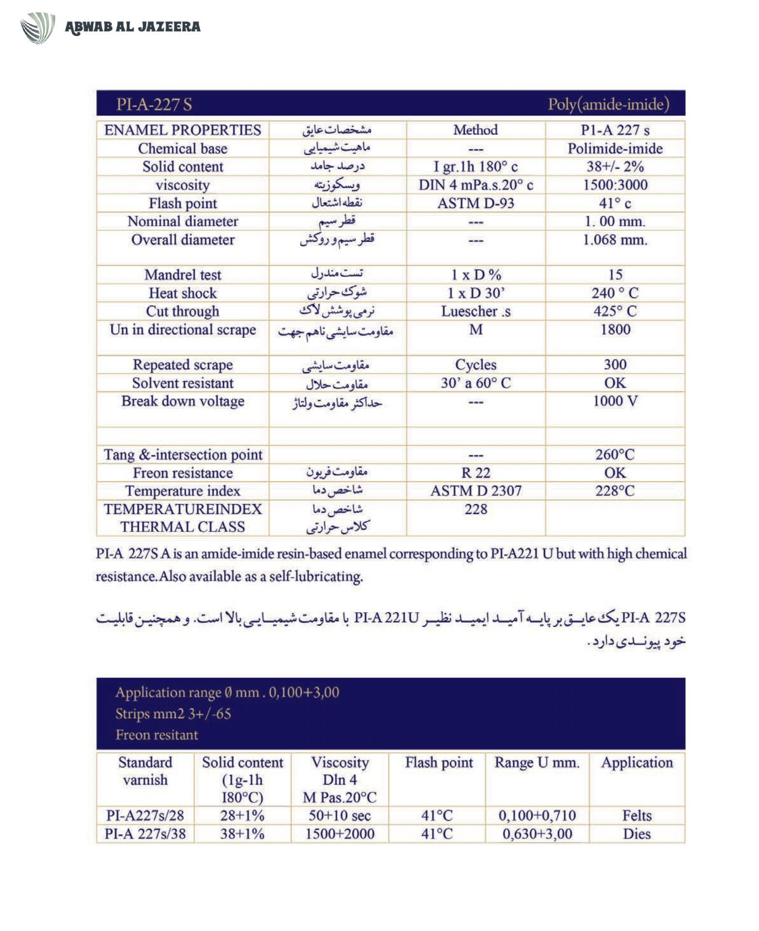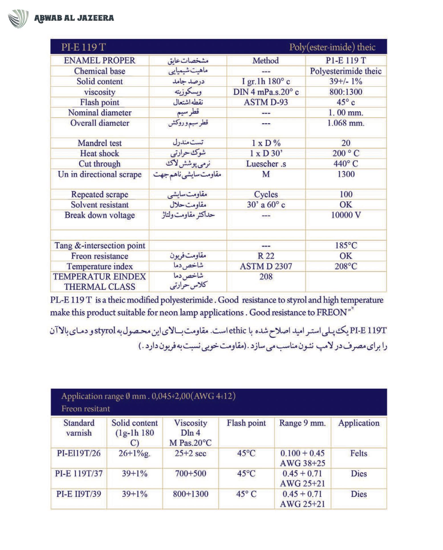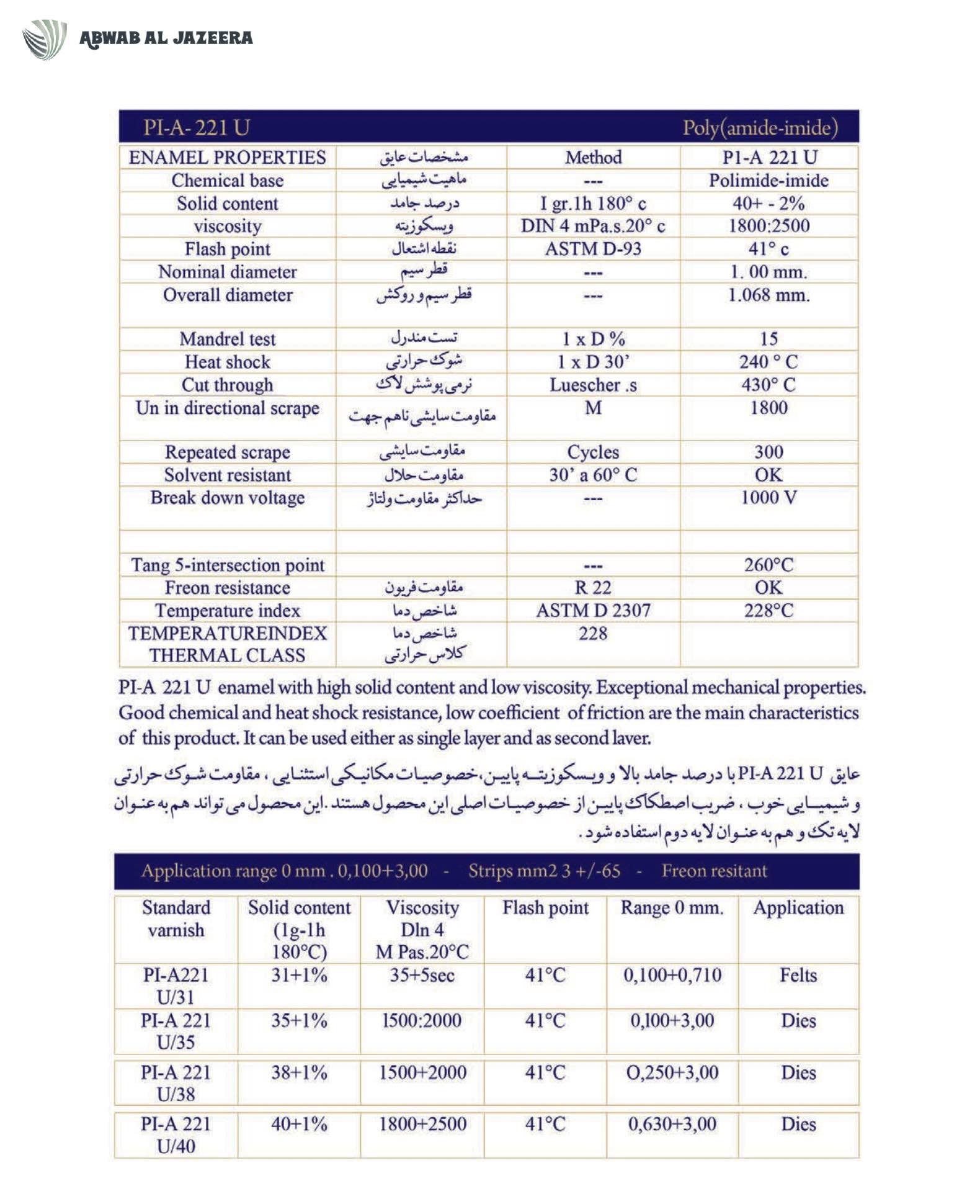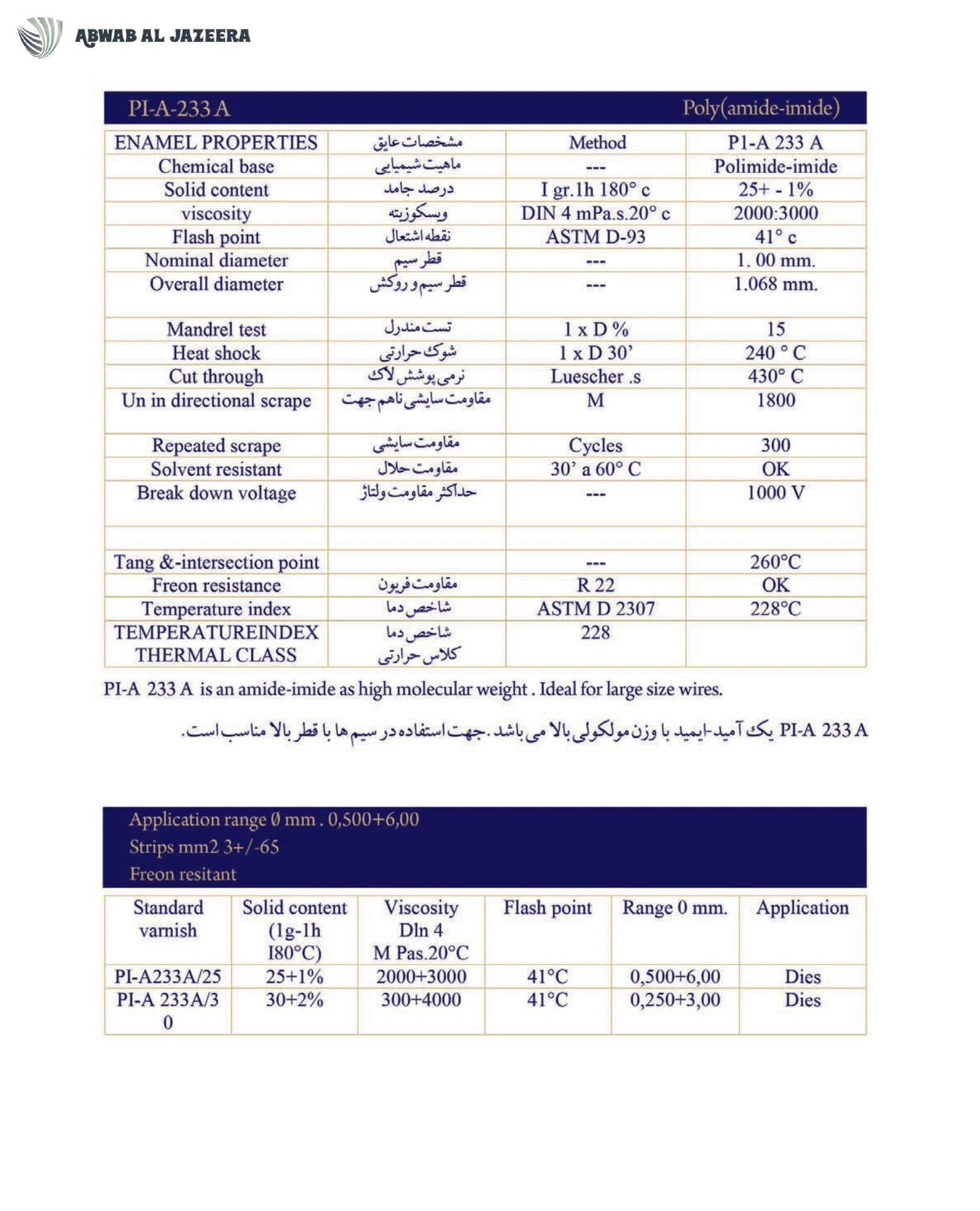 product comparable with the most well-known enamel insulation products