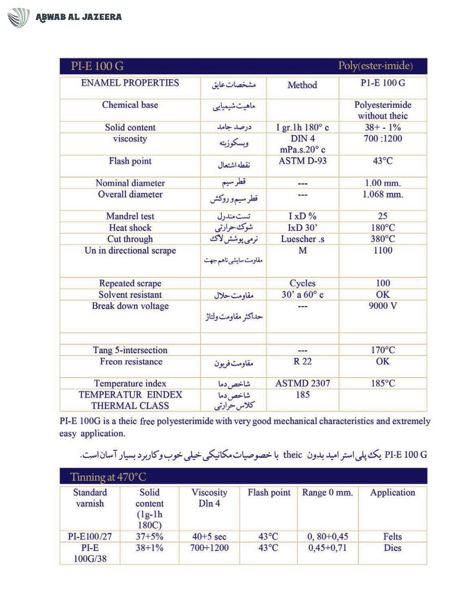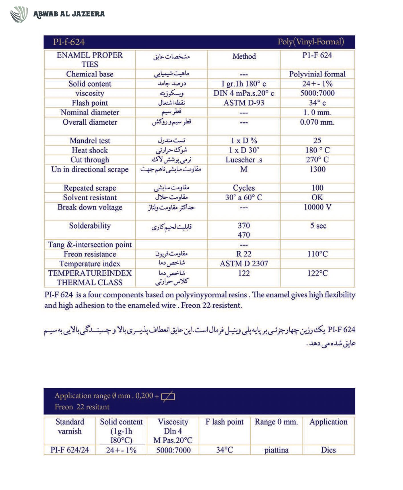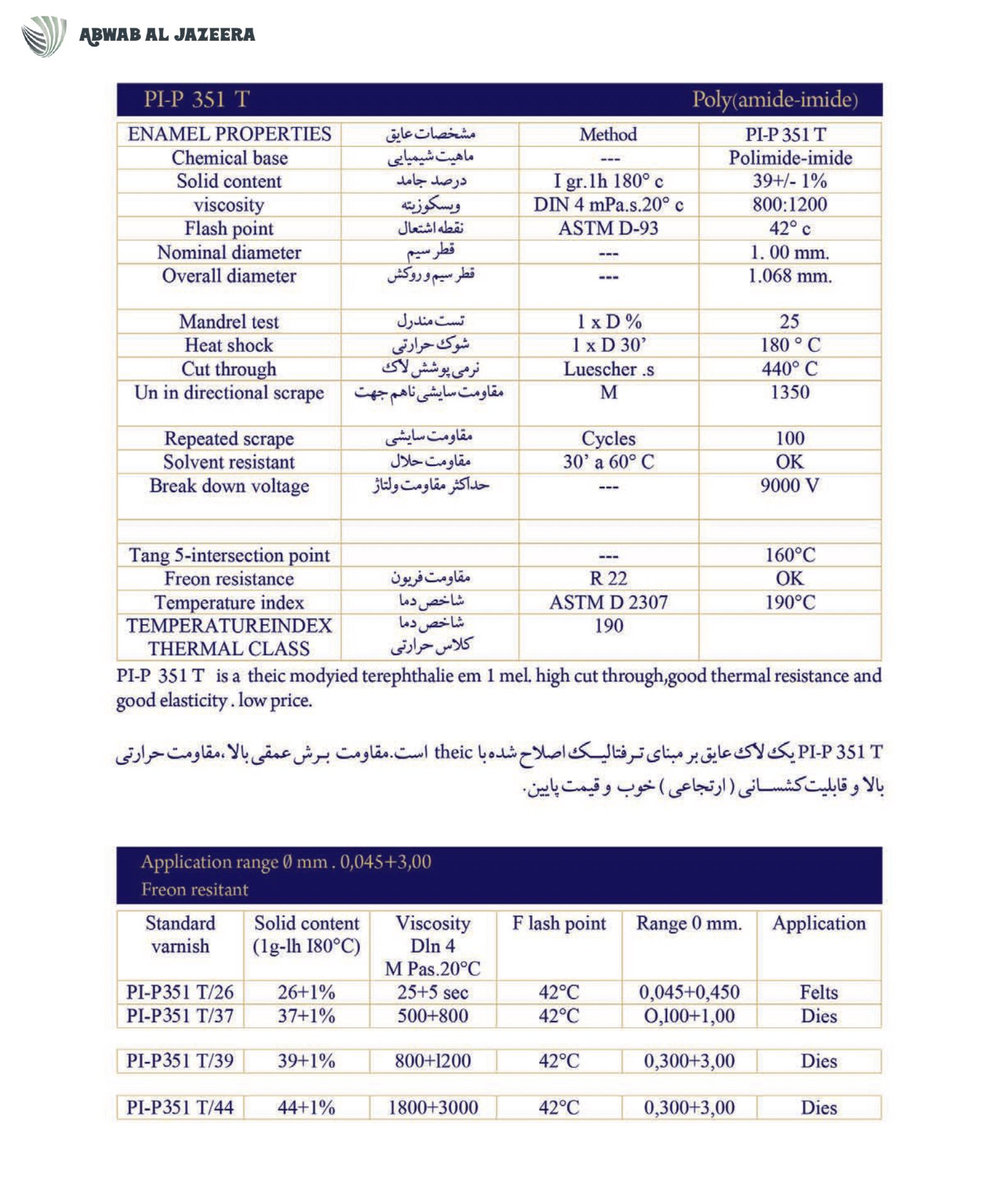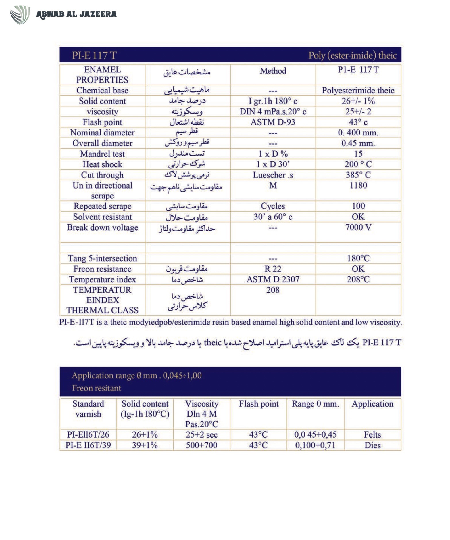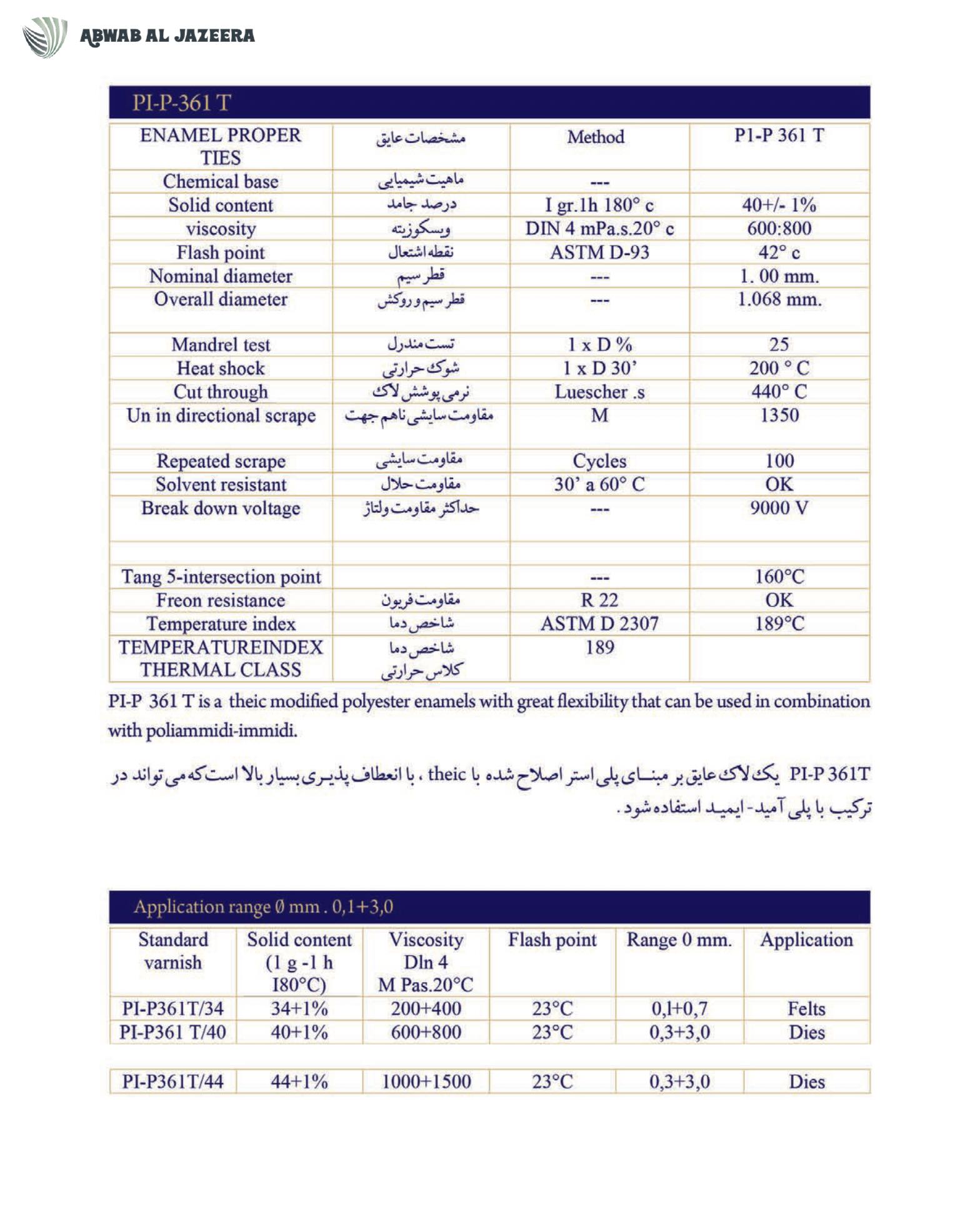 product comparable with the most well-known enamel insulation products