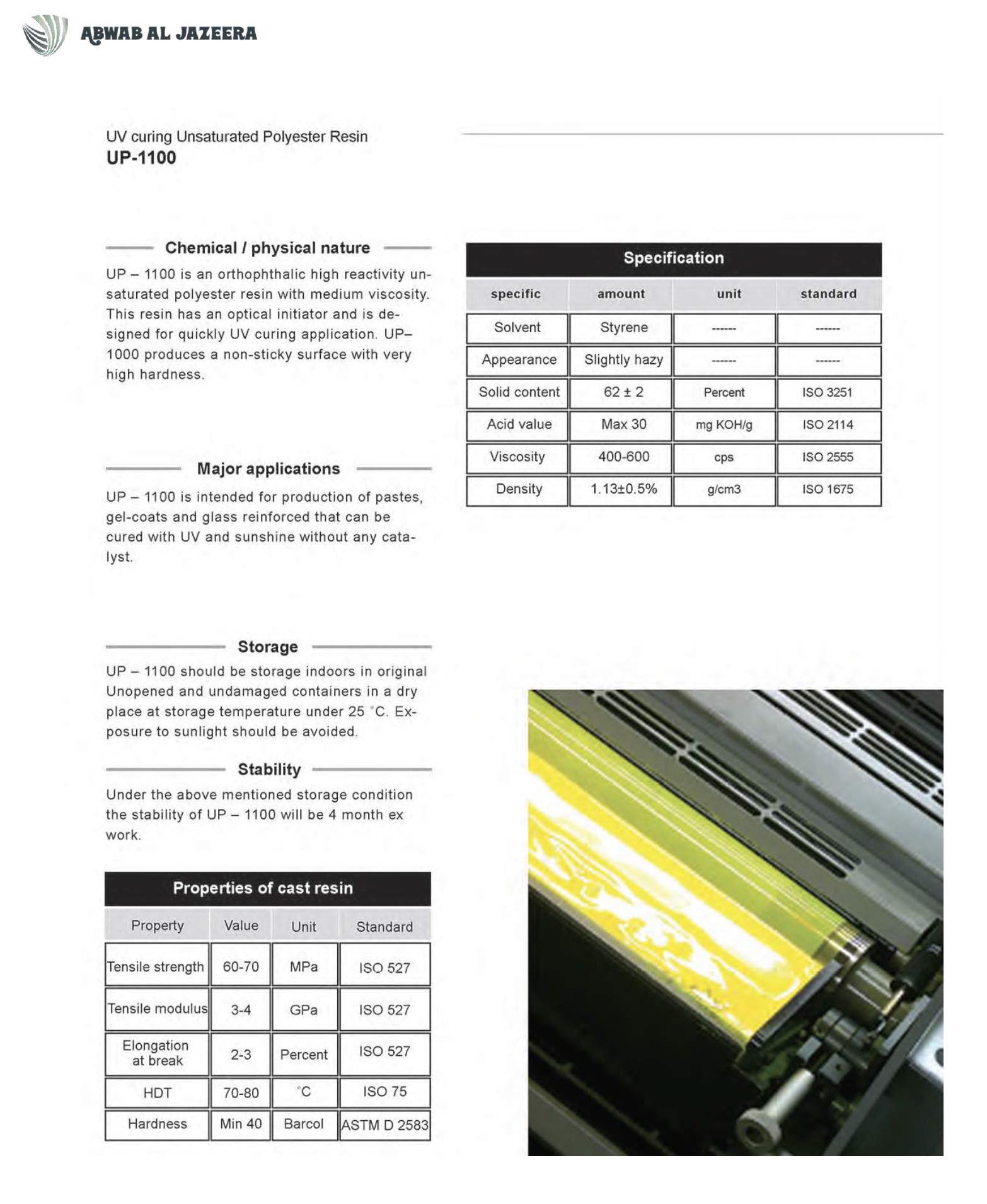 Unsaturated polyester resin is a thermoset resin amenable to curing from a viscous liquid to a solid under the correct conditions. Unsaturated polyester resins are known as ‘polyester resin’ and even ‘polyester’ for short. Today, a wide range of polyester resins have been created from different acids, glycols and monomers, each having different properties and can be applied to everything from marine vessels to fibreglass flat roofs.