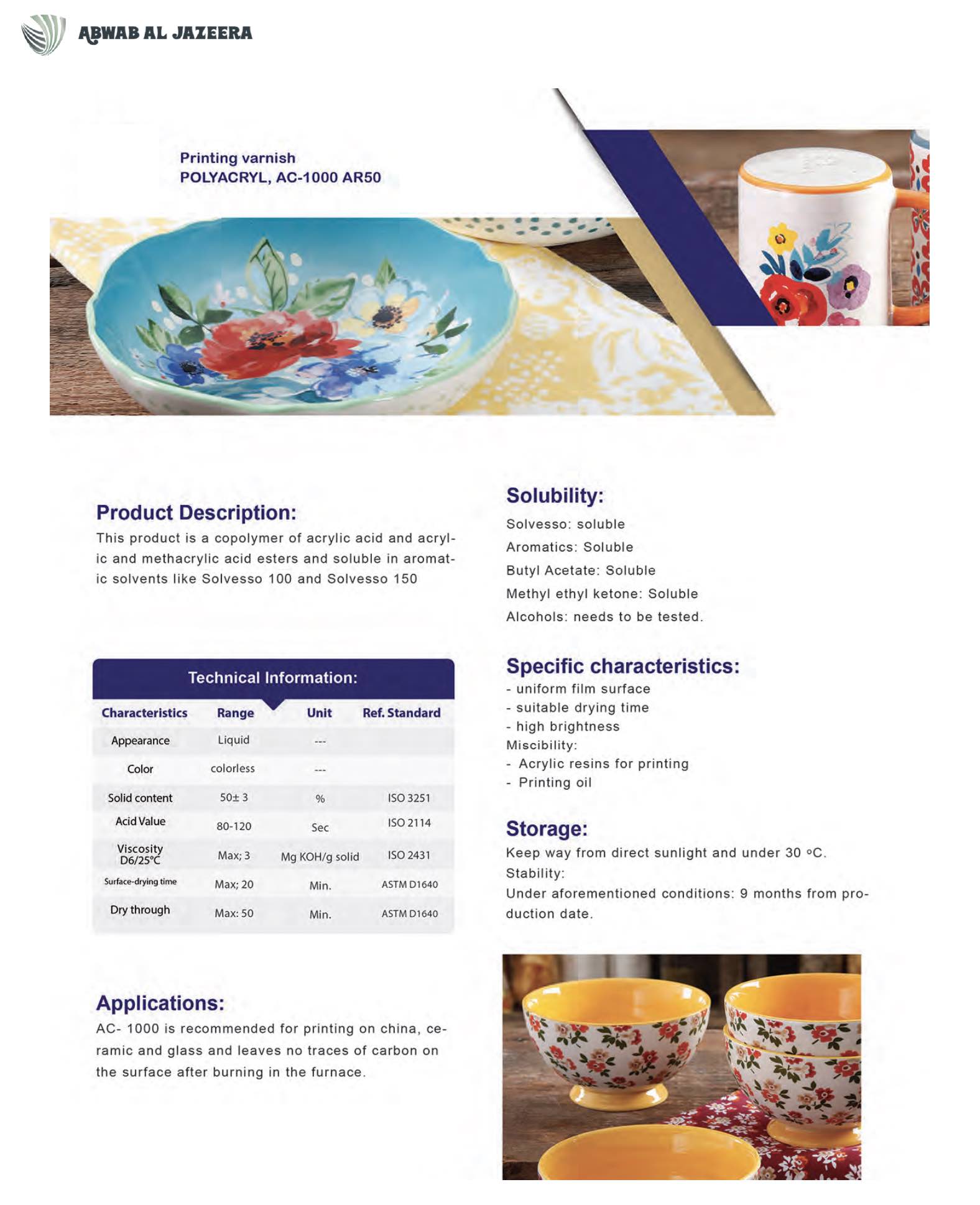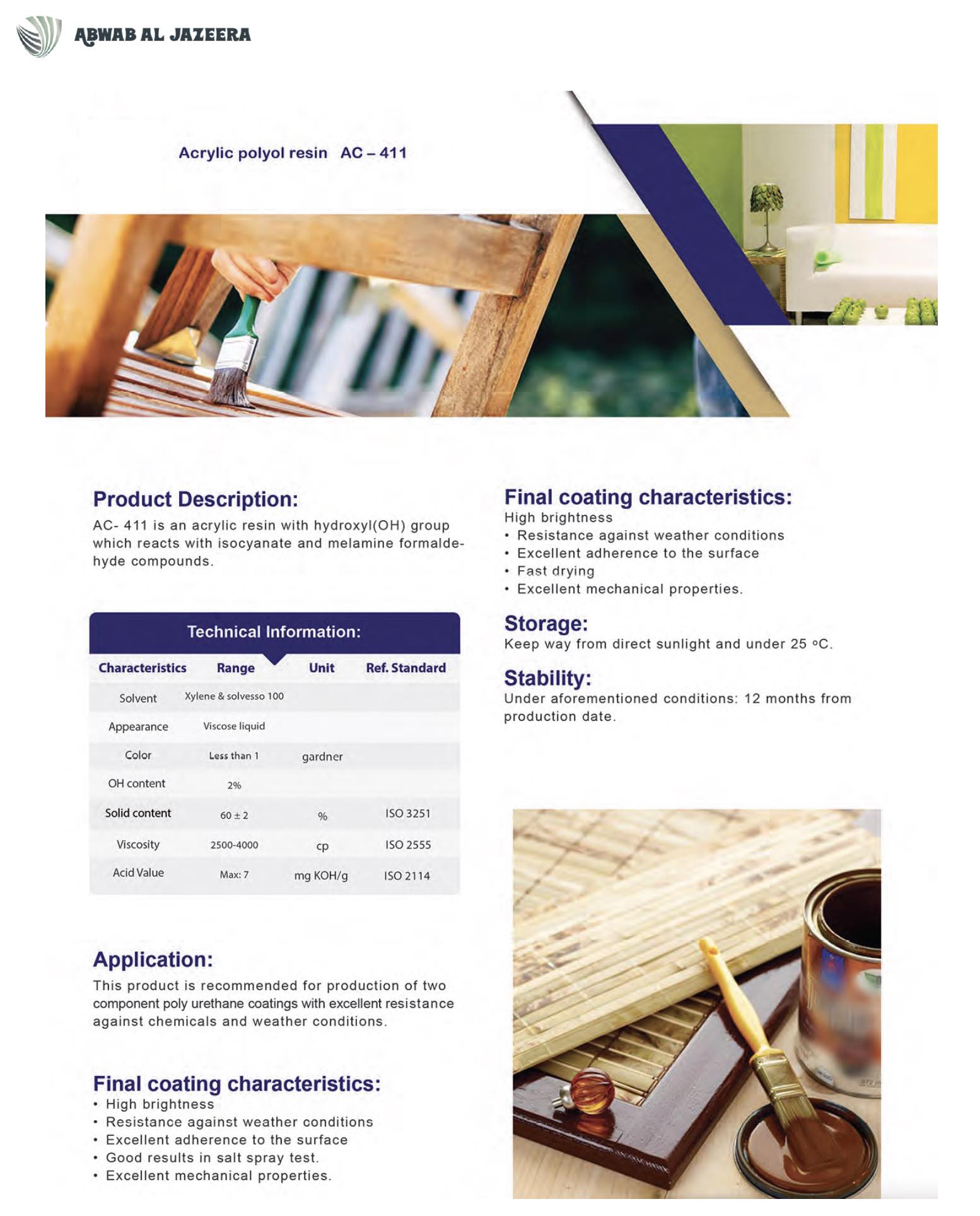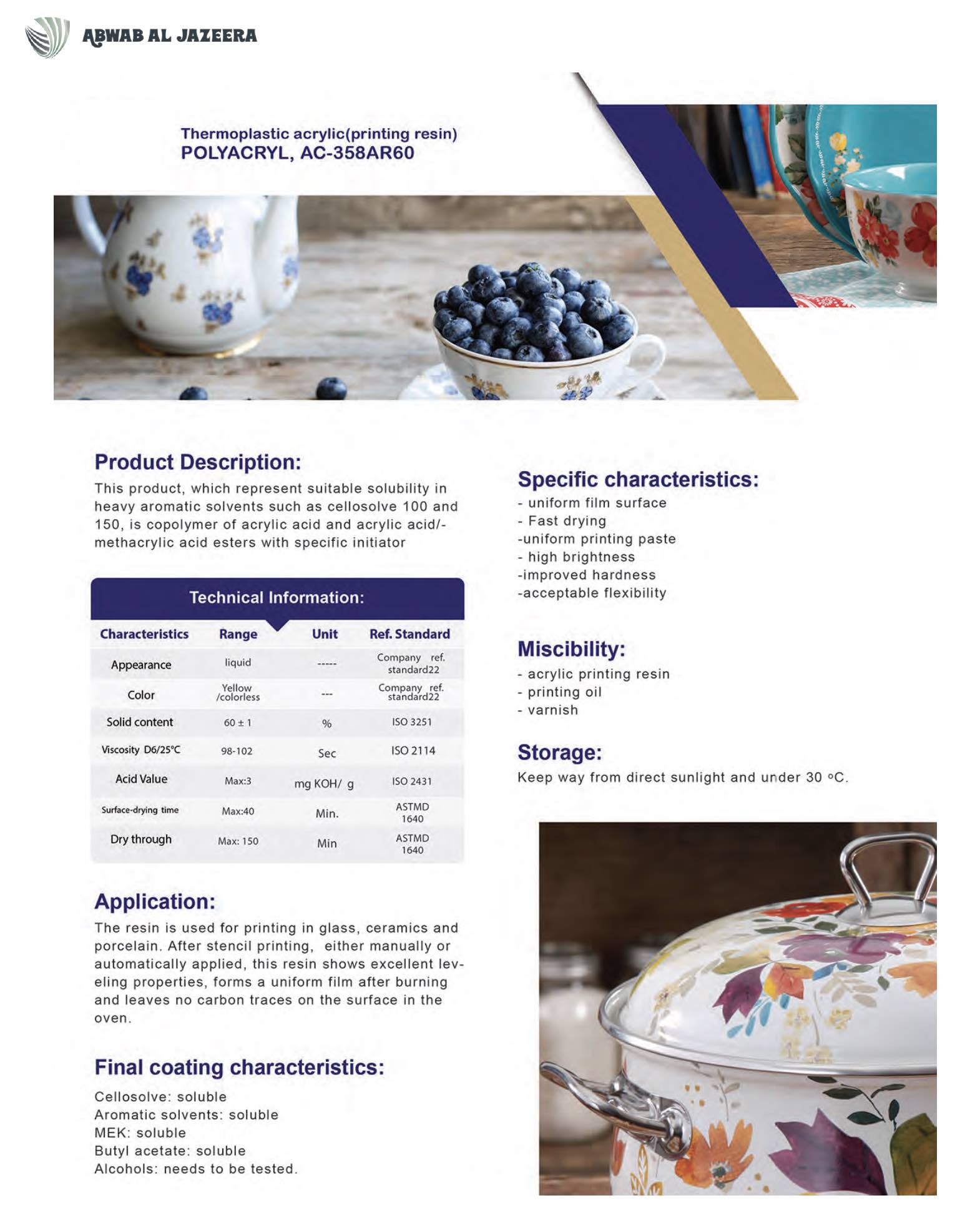 Solventborne acrylic resins have homogeneous film with excellent workability and fast drying properties.Therefore, they are used for various applications and industries including plastics, automotive refinish and metal coatings and so on.