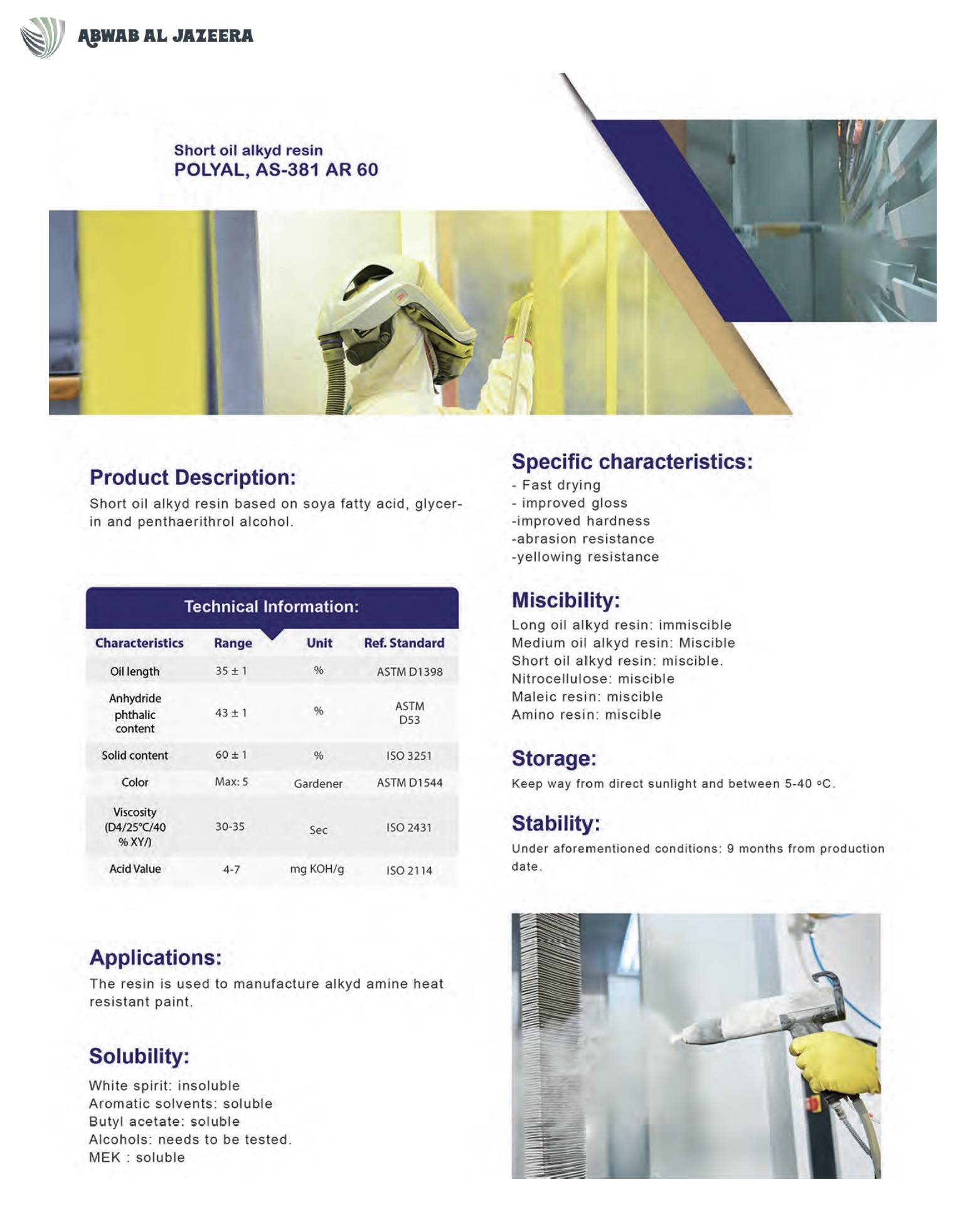 different categories such as Alkyd Resins, different types of acrylic Resins,